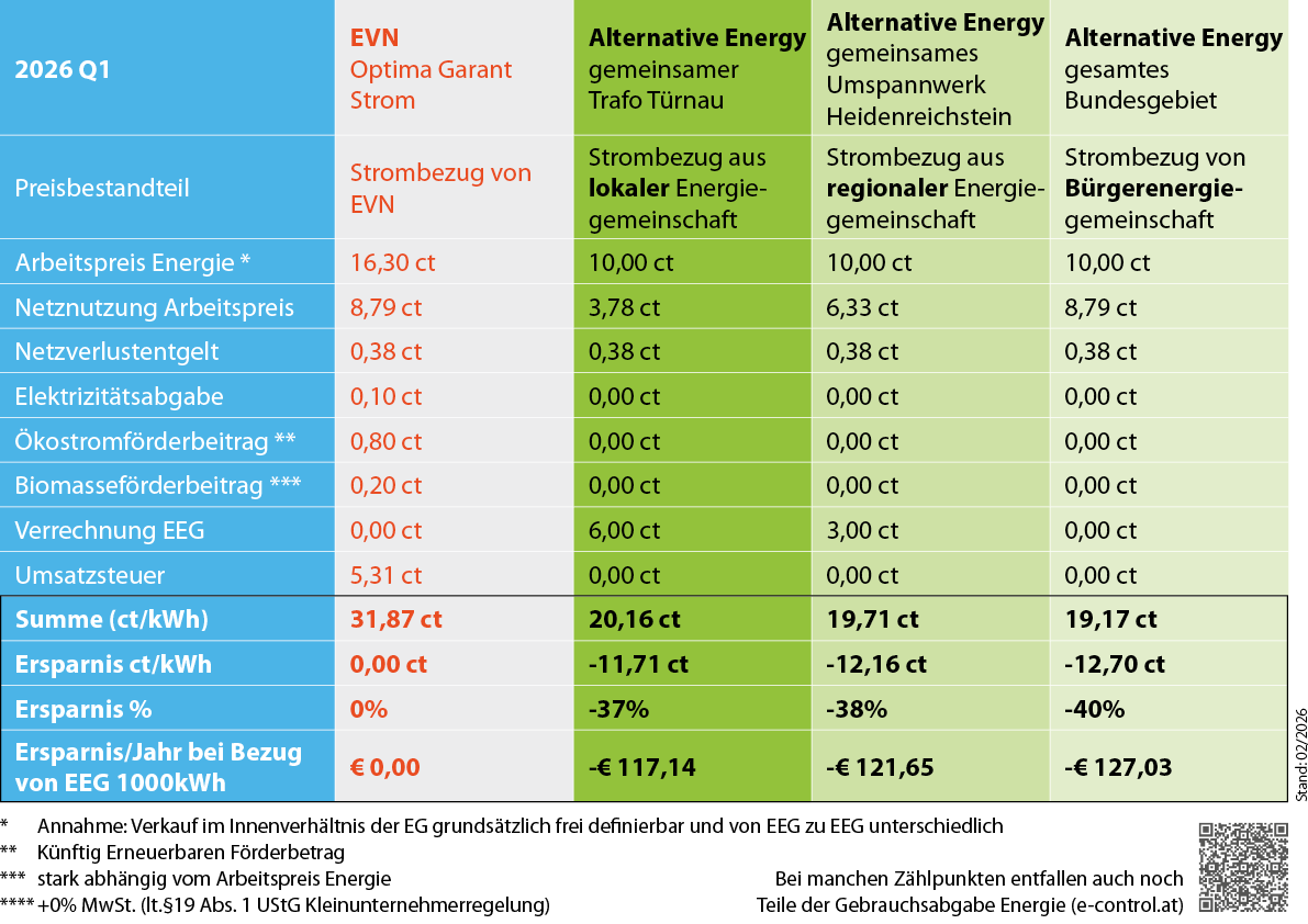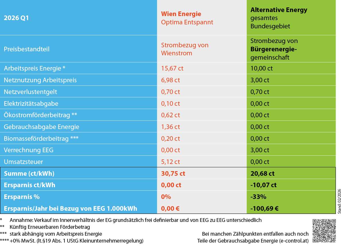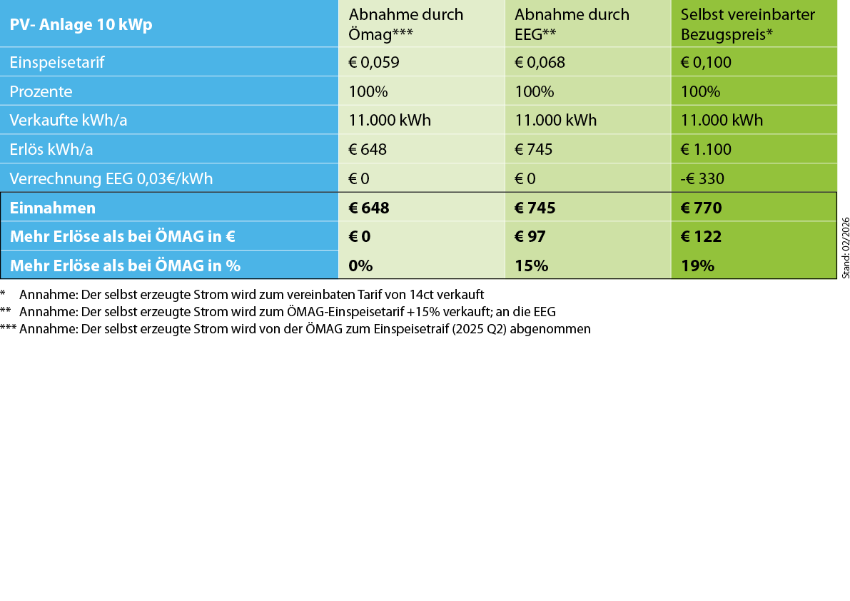Sie verkaufen an die Energiegemeinschaft= ÖMAG-Tarif +15%